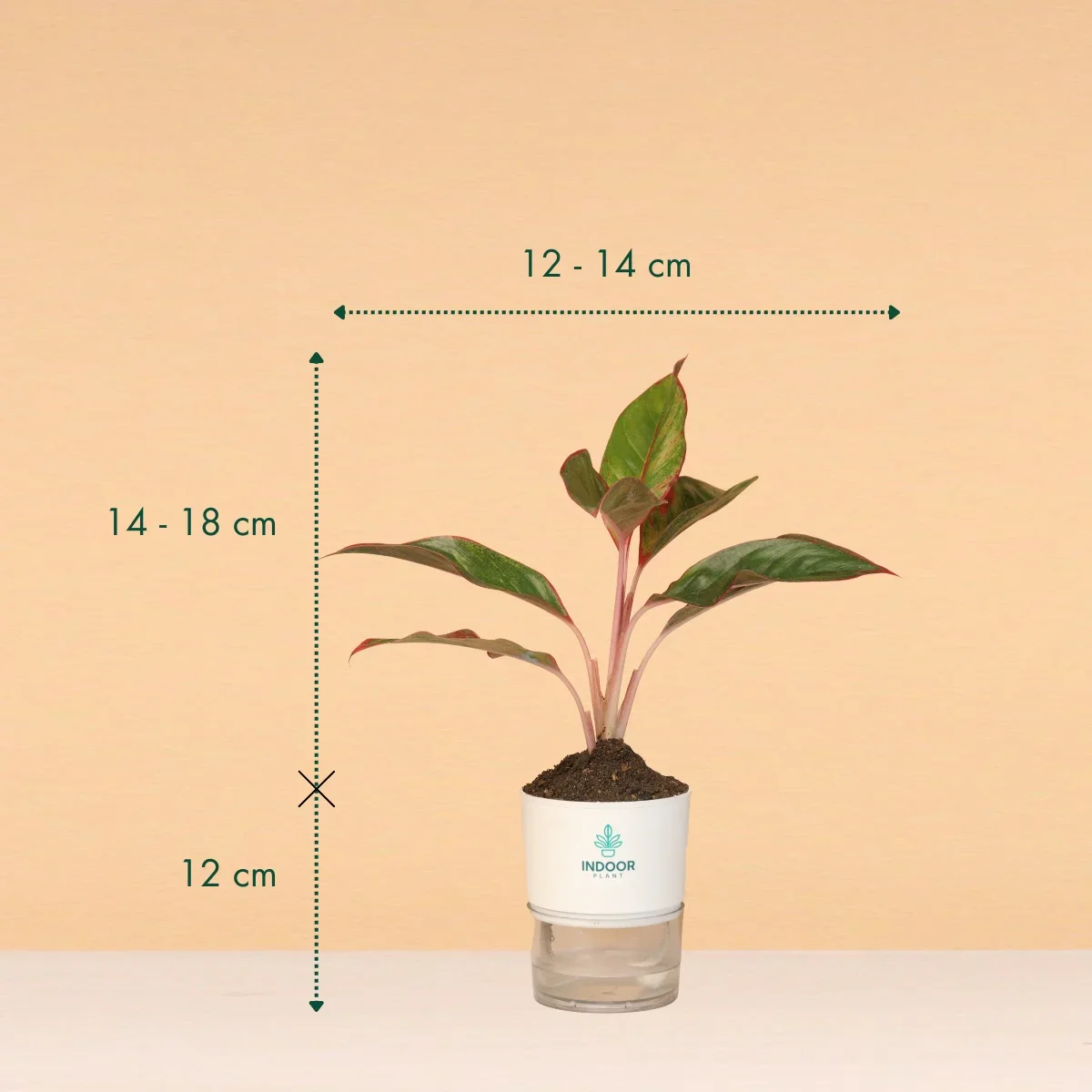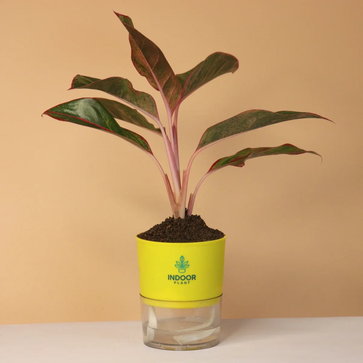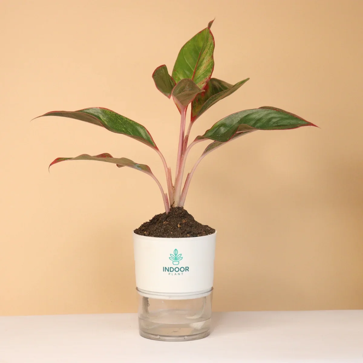 Aglaonema Red Lipstick Plant with Self-Watering Pot: Bold Beauty with Easy Care