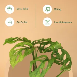 Add charm and elegance to your home with the Small Monstera Broken Heart Plant. Its iconic, split, heart-shaped leaves make it a standout addition to any room. This compact plant thrives in indirect light and requires minimal watering, making it perfect for beginners or busy individuals. Beyond its beauty, it purifies the air, reduces stress, and fits seamlessly into small spaces like desks or shelves. Small Monstera Plant, Broken Heart Plant, Monstera Indoor Plant, Compact Decorative Plants, Buy Small Monstera Online, Heart-Shaped Leaf Plant, Indoor Air Purifying Plants, Monstera Plant Care, Low Maintenance Houseplants, Stylish Indoor Plants, Plants for Small Spaces, Monstera Broken Heart Benefits, Indoor Plants for Beginners, Small Decorative Plants for Office, Elegant House Plants, Best Plants for Clean Air, Low Light Tolerant Plants, Monstera Broken Heart Online, Compact Indoor Greenery, Desk Plants for Office, Stress-Relieving Plants, Easy to Care Indoor Plants, Tropical Indoor Plants, Small Monstera for Home, Plants for Better Mood, Decorative Green Plants, Best Plants for Living Room, Air Purifying Monsteras, Monstera for Small Apartments, Easy Indoor Green Plants, Buy Decorative Plants Online, Natural Decor for Home, Stylish Green Houseplants, Indoor Plants for Fresh Air, Monstera with Split Leaves, Small Indoor Plant Ideas, Perfect Plants for Apartments, Space-Saving House Plants, Monstera, Plant for Beginners, Best Office Desk Plants, Indoor Plants for Relaxation, Compact Size Houseplants, Small Monstera for Decoration, Beautiful Green Plants, Tropical Plant with Unique Leaves, Easy Plants for Busy People, Mini Monstera Broken Heart, Plants to Improve Air Quality, Indoor Greenery for Wellness, Affordable Indoor Plants, Buy House Plants for Desk, Low Maintenance Monsteras, Natural Home Decor Ideas, Iconic Split Leaf Plant