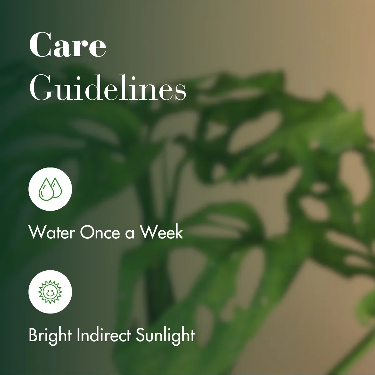 The Small Monstera prefers bright, indirect light, but it can tolerate low light, though growth may slow.