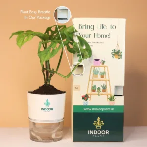 The Money Plant Variegated in a self-watering pot is a beautiful and low-maintenance plant perfect for any space. Its striking green and white variegated leaves add a touch of elegance to your home or office. With the convenience of a self-watering pot, it’s easy to care for, making it ideal for both plant enthusiasts and beginners a like.