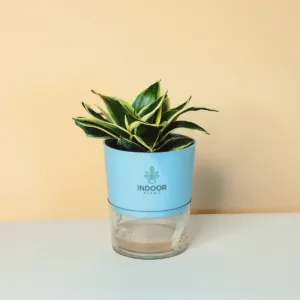 The Money Plant Variegated in a self-watering pot is a beautiful and low-maintenance plant perfect for any space. Its striking green and white variegated leaves add a touch of elegance to your home or office. With the convenience of a self-watering pot, it’s easy to care for, making it ideal for both plant enthusiasts and beginners a like.